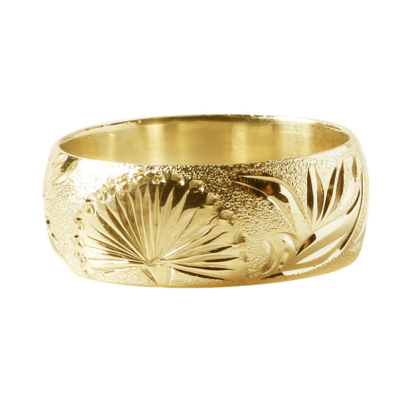 14K Gold Custom-Made 2 in 1 Hawaiian Heirloom Scroll and Maile Leaf Engraving Flat Ring 3mm
