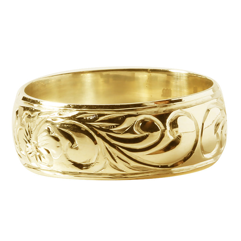 14K Yellow Gold Custom-Made Hawaiian Heirloom Ring with Princess Scroll Engraving 3mm