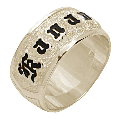 14K Gold Custom-Made Hawaiian Heirloom Ring Black Enamel Letter Cut Out Edge Medium Weight (Standard)