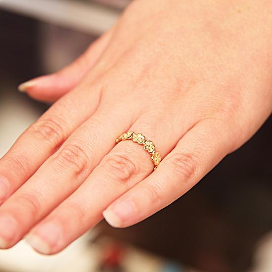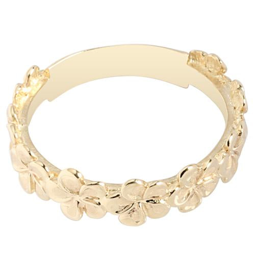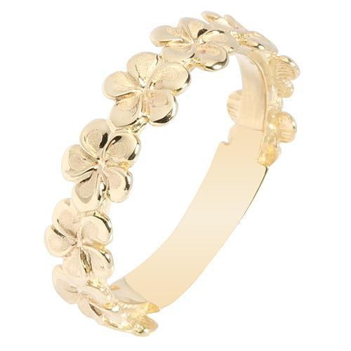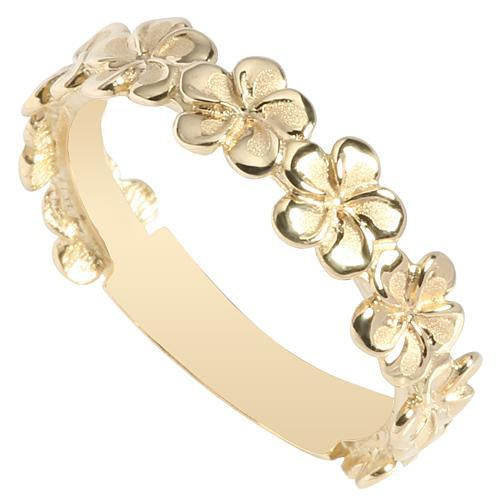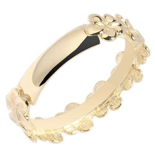 14K Yellow Gold Plumeria Lei Ring Sandblast Polish Edge 5mm