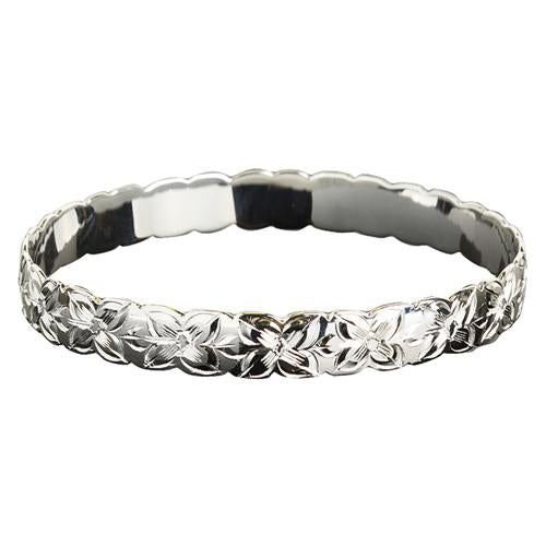 Sterling Silver Hawaiian Jewelry Plumeria Engraved Bangle