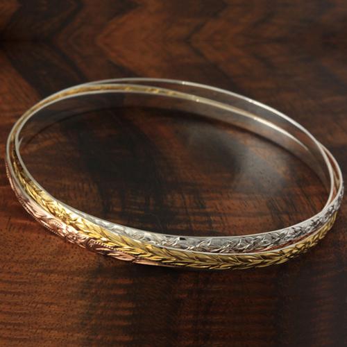 Sterling Silver Hawaiian Bangle 3 in 1 Heirloom Scroll Engraving Bangle Tri-color