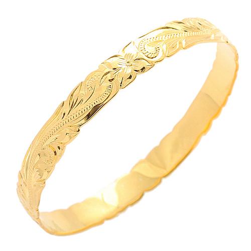 Sterling Silver Scrolling Plumeria Engraving Round Band Bangle YG 5.5mm