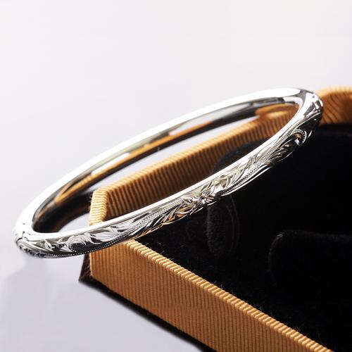 Sterling Silver Scrolling Plumeria Engraving Round Band Bangle One Tone 5.5mm