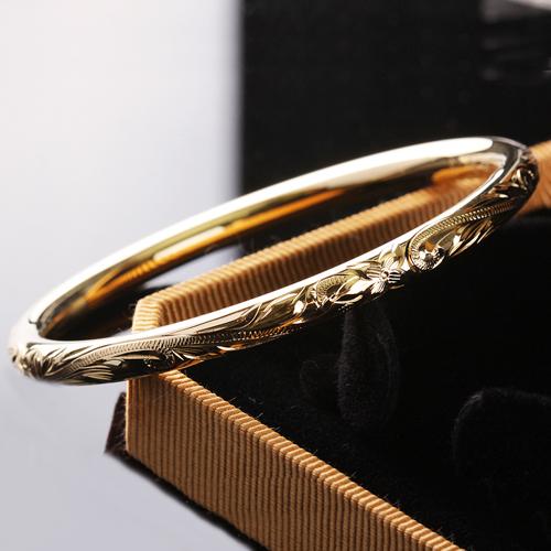 Classic Style Sterling Silver Hawaiian Bangle Heirloom Scrolling Yellow Gold Plated