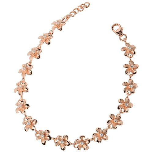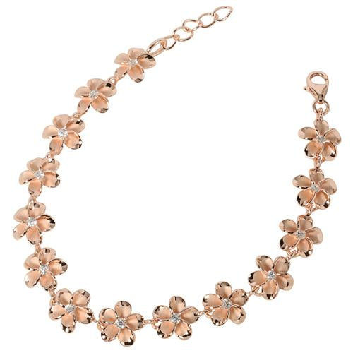 Sterling Silver Pink Gold Plated 10mm Plumeria with CZ Bracelet