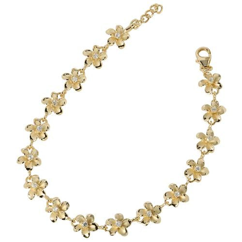 Sterling Silver Yellow Gold Plated 8mm Plumeria with CZ Prong Bracelet