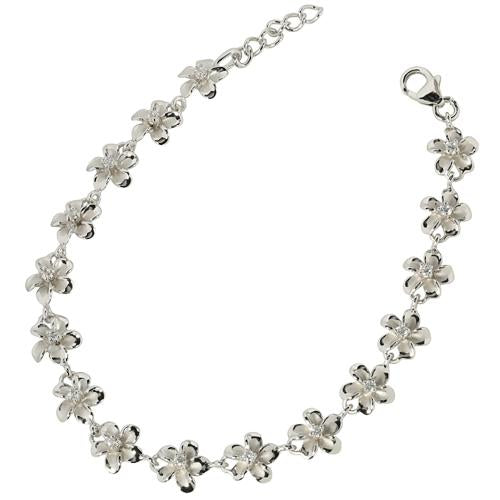 Sterling Silver Rhodium Plated 8mm Plumeria with CZ Prong Bracelet